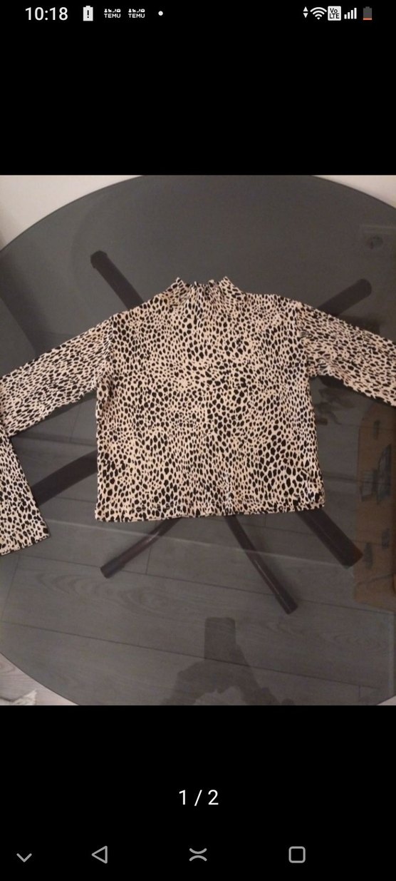 Kahverengi Desenli Uzun Kollu Boğazlı Bluz