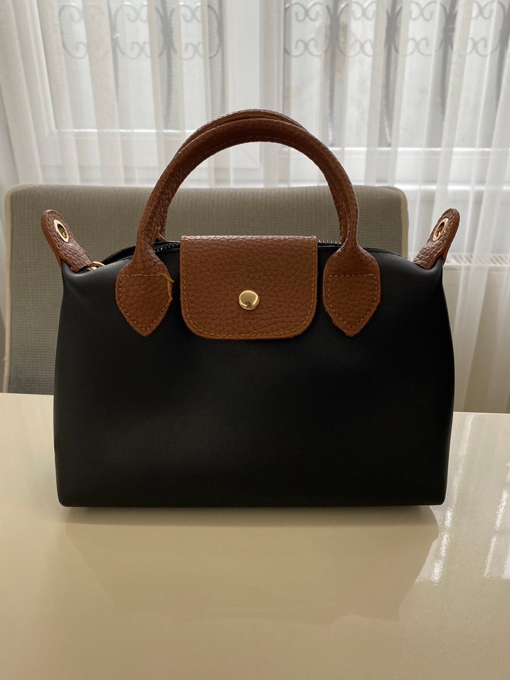 Kahverengi deri ve tokalı saplara sahip, minimalist ve klasik zarafette, günlük kullanıma uygun kadın el çantası. Ağır bir şey konulduğunda uzun askısı çıkabiliyor nedenini çözemedim sanırım biraz gevşek. Son fotoğraftaki gibi de ufak bir deformesi var. Bunun dışında tatlı ve zarif bir çanta severek kullanacağınıza eminim. Son fiyattır.