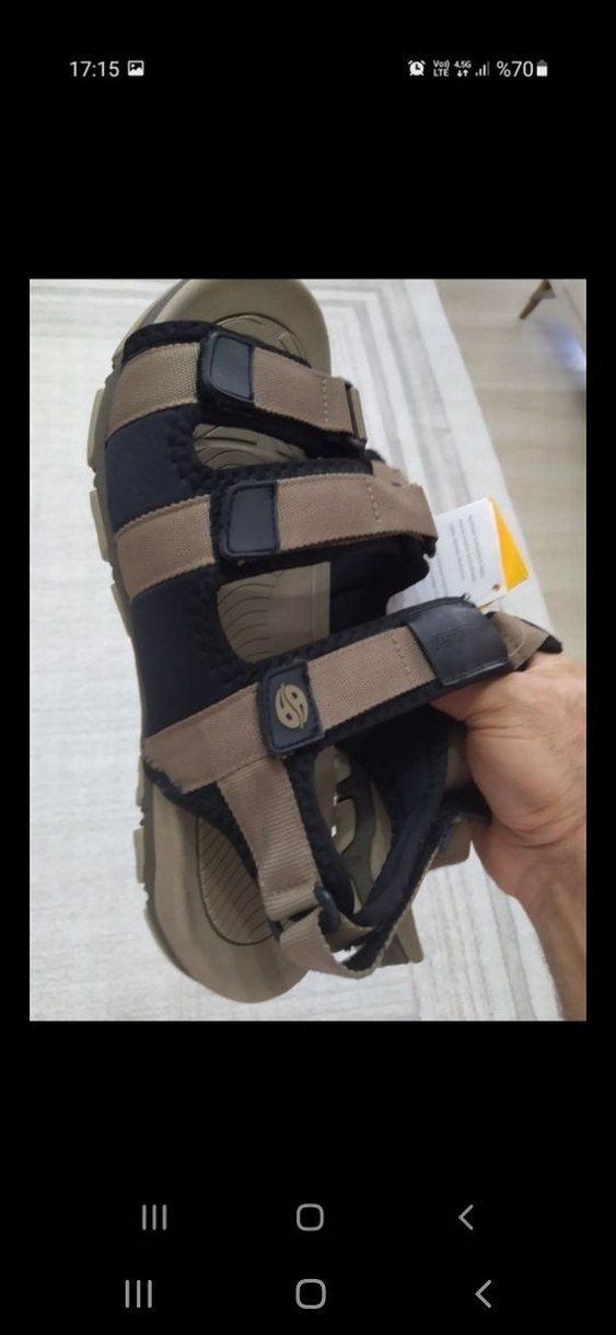 Dış mekan kullanımı için kaymaz kauçuk tabanlı, desenli ve cırt cırtlı kahverengi erkek sandalet. Trendy günlük ve sokak stiline uygun. doclers 45 sifir