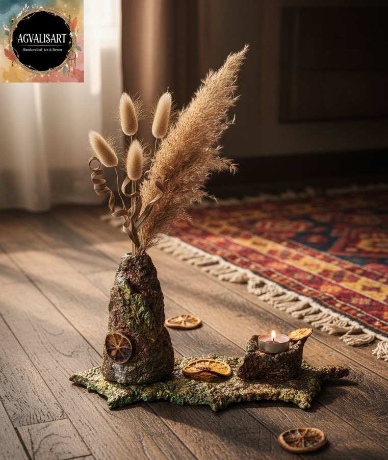 Kahverengi, doğal dokulu vazo ve mumluk seti Bambu çubuğu ile ve tütsülerinizle kullanabilirsiniz organik ürünler ile tasarlanmıştır enerji alanız için muhteşem tasarım, tek üründür görseldeki çiçekler dahil değildir#handmadeart#BohemDekor#VintageHome#