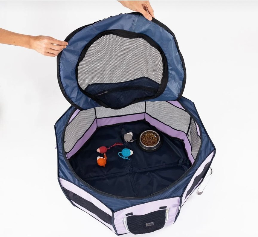 Havalandırma ve görünürlük için file yanları olan pastel kahverengi doğum çadırı. Ön açılır kapak ve yumuşak kumaş içerir. Bende rengi kahverengi filesinde 2 3 tane çok küçük delikler var başkada hiçbir sorunu yok tertemiz