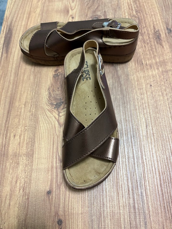Kahverengi Dolgu Topuklu Kadın Sandalet