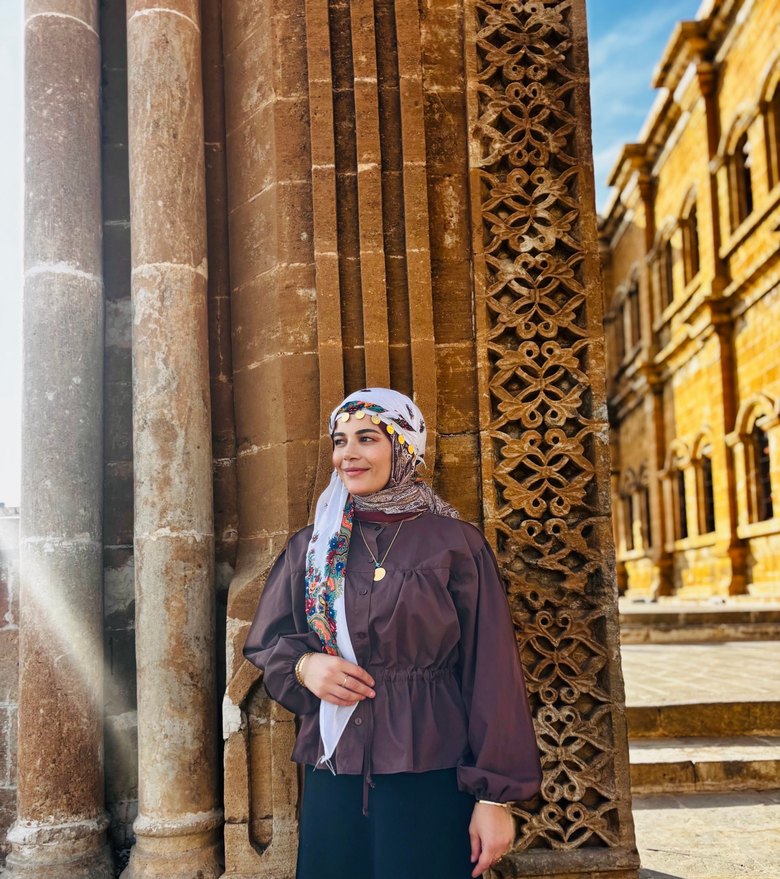 Koyu kahverengi, yumuşak sentetik kumaştan kadın gömlek drapeli tasarımıyla mütevazı ve bohem sokak giyimine uyum sağlar.