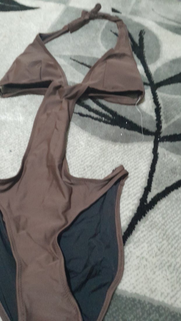 Kahverengi, drapeli ve askılı detaylara sahip, vücuda oturan kadın mayo. Sokak stiline uygun, şık ve modern tasarım .