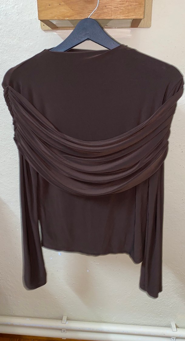 Kahverengi Drapeli Uzun Kollu Bluz