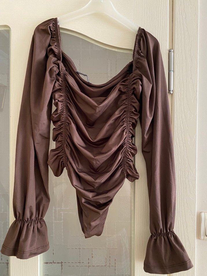 Yumuşak vücudu saran kumaştan, drapeli tasarımlı, uzun kollu fitted bluz Trendyol milla ürünü . Alttan çıtçıtlı body