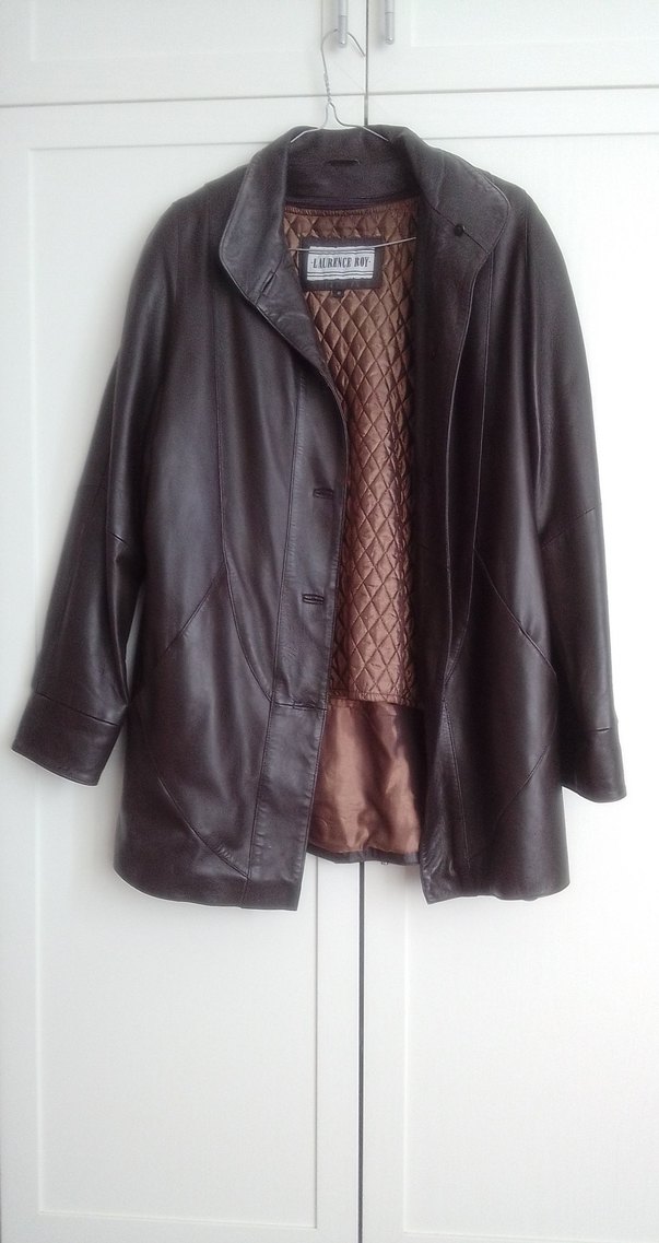 Kahverengi deri, düğmeli kadın ceket; klasik biker stili, normal boy, dik yakalı, uzun kollu ve kapitone astarlı ,m beden içinde uygundur ,Kanada dan alınmıştır