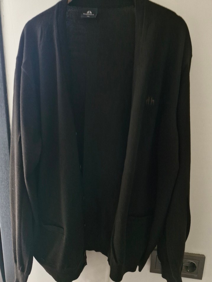 Düğmeli, uzun kollu kahverengi hırka, yumuşak ve sıcak kumaştan, ofis kullanımı için uygundur.