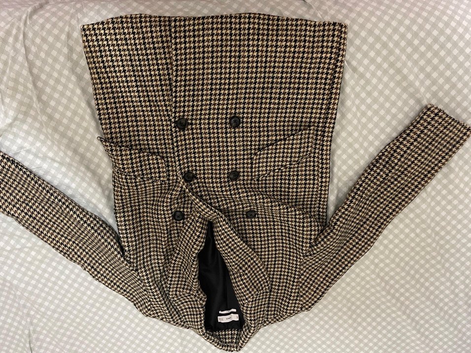 Kahverengi, düğmeli, uzun kollu kadın blazer ceket. Paris tarzı sokak modasına uygun, , regular fit ve klasik desenli. Ekoseli xs beden ama oversize olduğu için xs ve m beden aralığına rahatlıkla olacaktır Hiç giyilmedi Mango Markasına ait