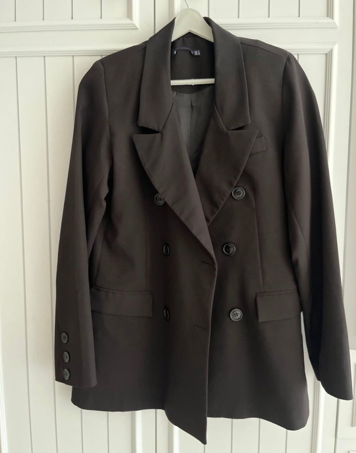 Kahverengi Düğmeli Kadın Ofis Ceket