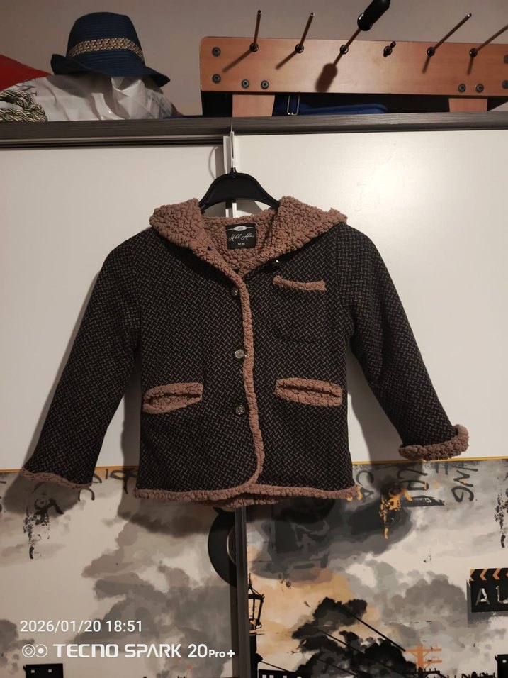 Kahverengi, düğmeli ve notched lapel yakalı kız çocuk kabanı. Yumuşak ve sıcak tutan fleece kumaştan, fit kesim.