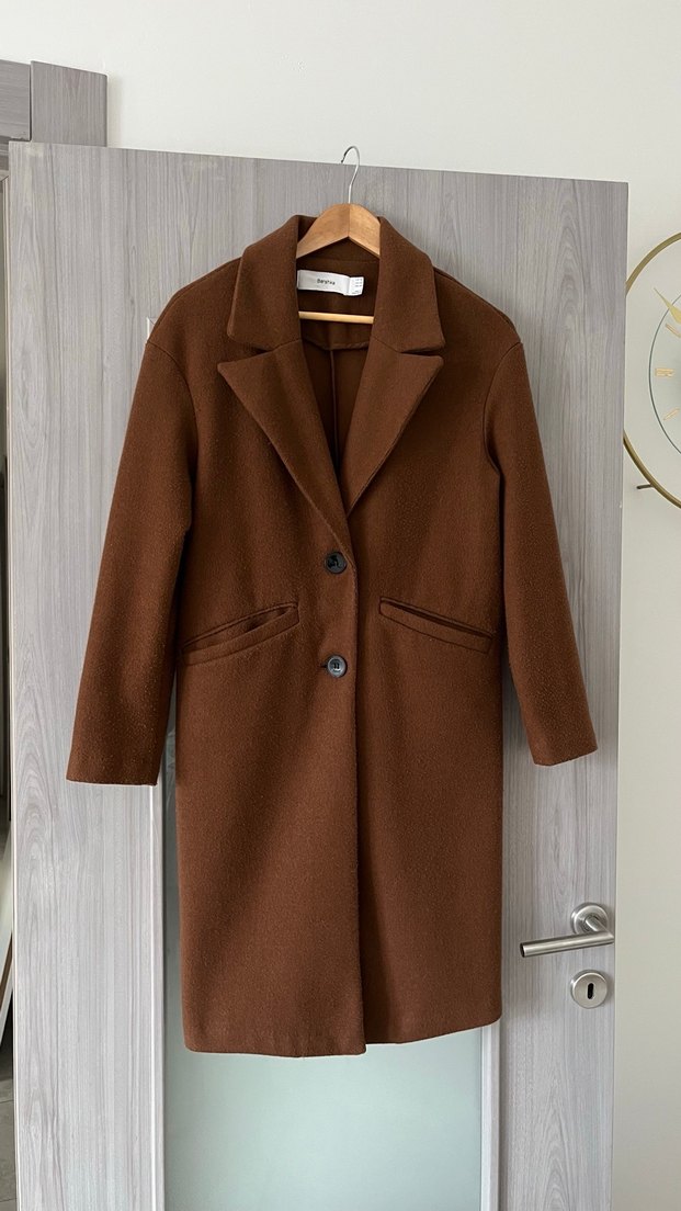 Az kullanıldı fakat tüylenmeler mevcut. Tiftik ve tüy temizleyici ile temizlenebilir. xs-s beden uyumlu astarsız ince kaban. Kahverengi taba arası bir renk