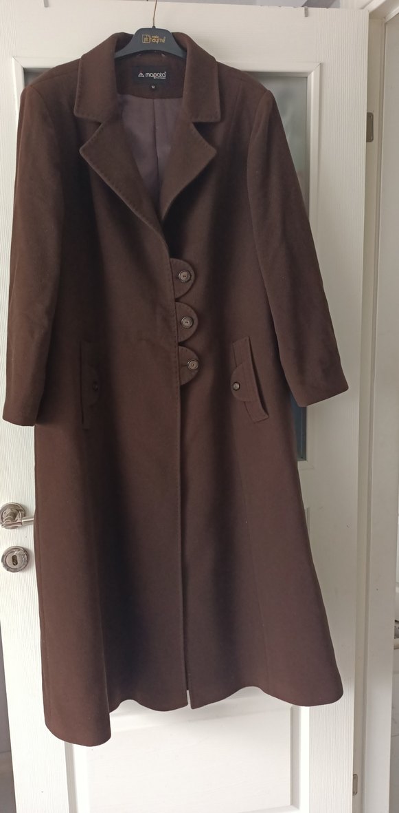 Kahverengi Düğmeli Uzun Kadın Kaban