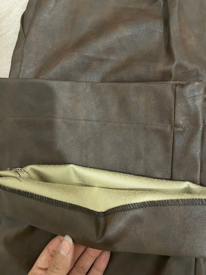 kahverengi tonlarda, düz desenli ve yumuşak dokulu deri örtüsü. Sokak tarzı şıklığı evinize taşır yıkanabilir deri pantalon. ️