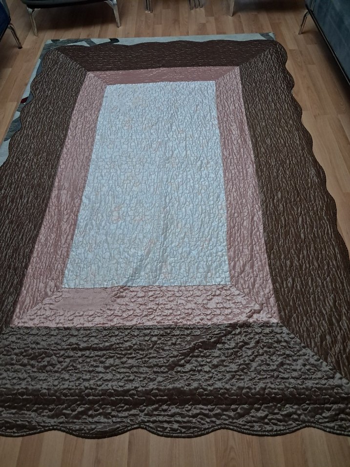 Düz kahverengi yatak örtüsü, katmanlı dikdörtgen tasarıma sahip. Dokulu kumaşıyla sade ama şık bir görünüm sunar. ️eni 1 60 ,boyu 2, 38 cm, küçük bi defosu var, fotoda belirttim, kullanıma engel değil,