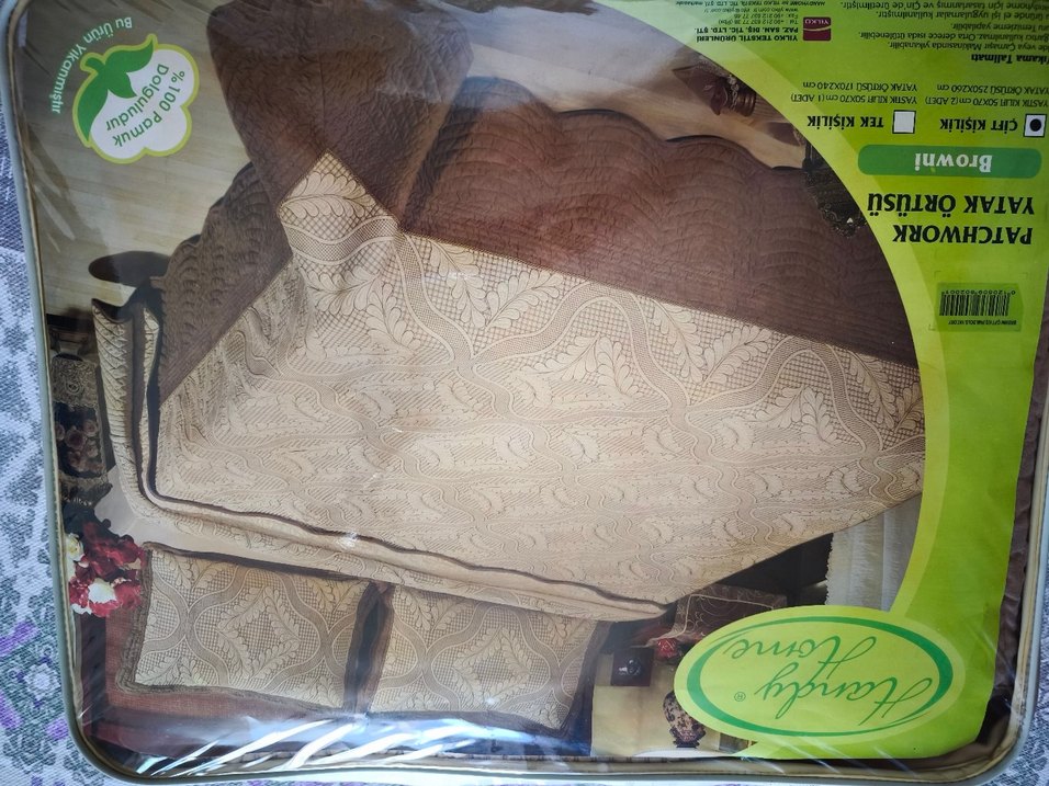 Kahverengi krem, düz desenli yatak örtüsü, yumuşak dokusuyla sıcak bir görünüm sunar. ️%100pamuk çift taraflı kullanılır.