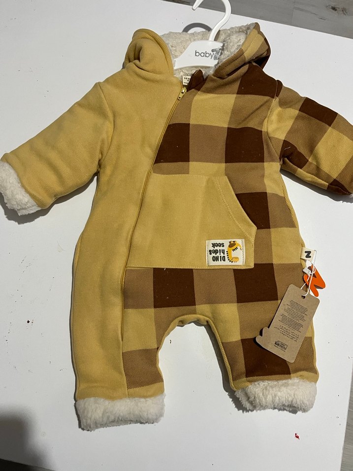 Kahverengi ekose desenli bebek tulumu, yumuşak kürk detaylı ve sıcak tutan polar kumaştan üretilmiştir. 3.6.9.12 aylar mevcut