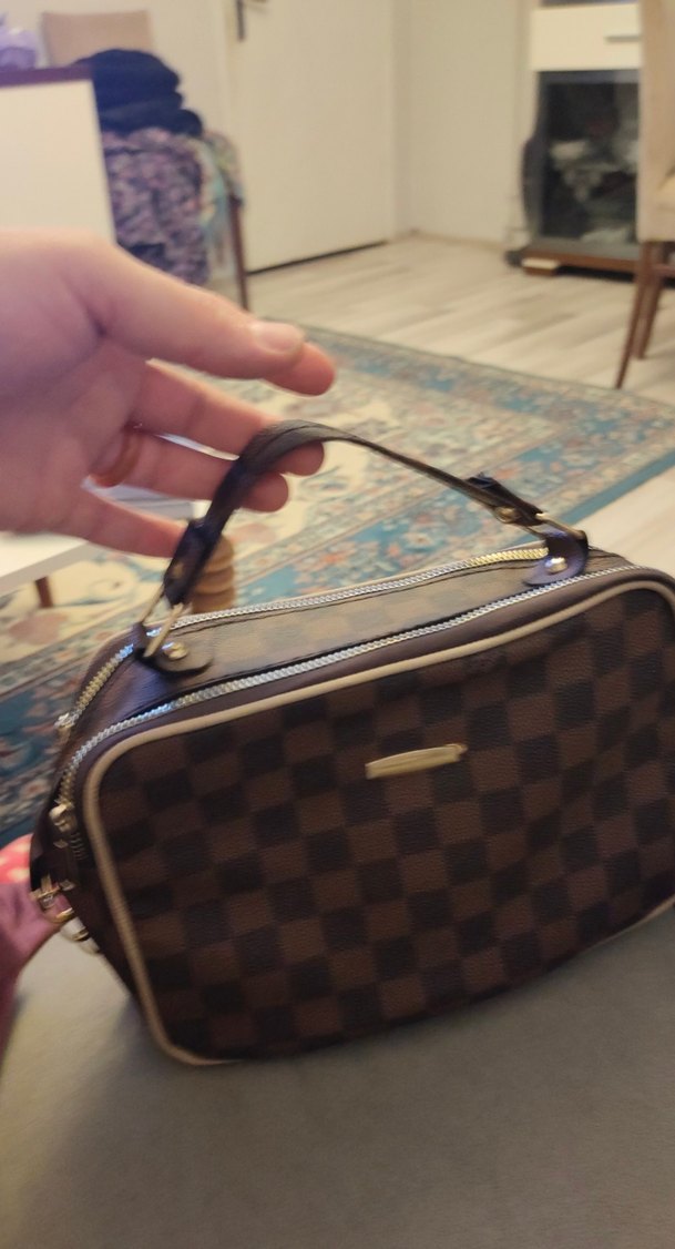 Kahverengi Ekose Deri Kadın El Çantası