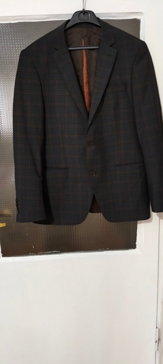 Kahverengi ekose desenli erkek çeket kısa yaka ve düğmeli ön kısmıyla klasik ve modern tarzı bir arada sunar. Ofis için uygundur.