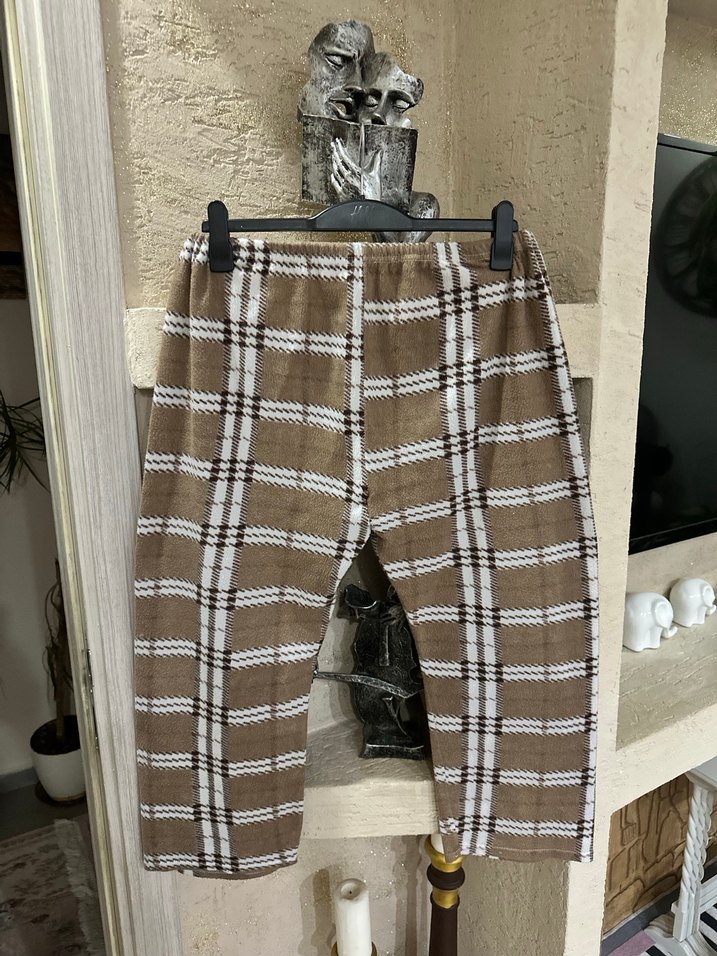 Kahverengi ekose desenli, lastikli, kısa kesim, bol kesim unısex pijama altı. Yumuşak sentetik kumaştan üretilmiştir, sokak tarzına uygundur.