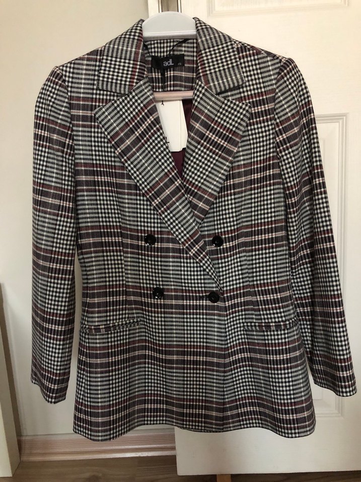 Kahverengi Ekose Düğmeli Kadın Blazer iki kol arası 45 boy 67 cm