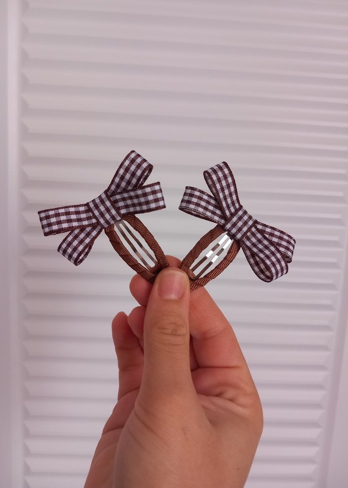 Kahverengi ekose desenli, fiyonk detaylı çocuk saç tokaları, renkli ve nostaljik bir tarz sunar. Diğer renkleri için yana kaydırıniz. Çift fiyatıdır. Yeni ilan açtırınız.
