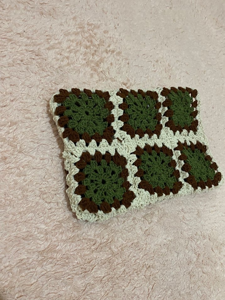 Koyu kahverengi ve yeşil ekose örgü desene sahip yastık kılıfı