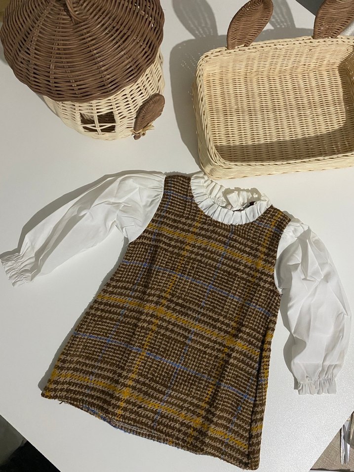 Kahverengi Ekose Örme Kız Bluzu