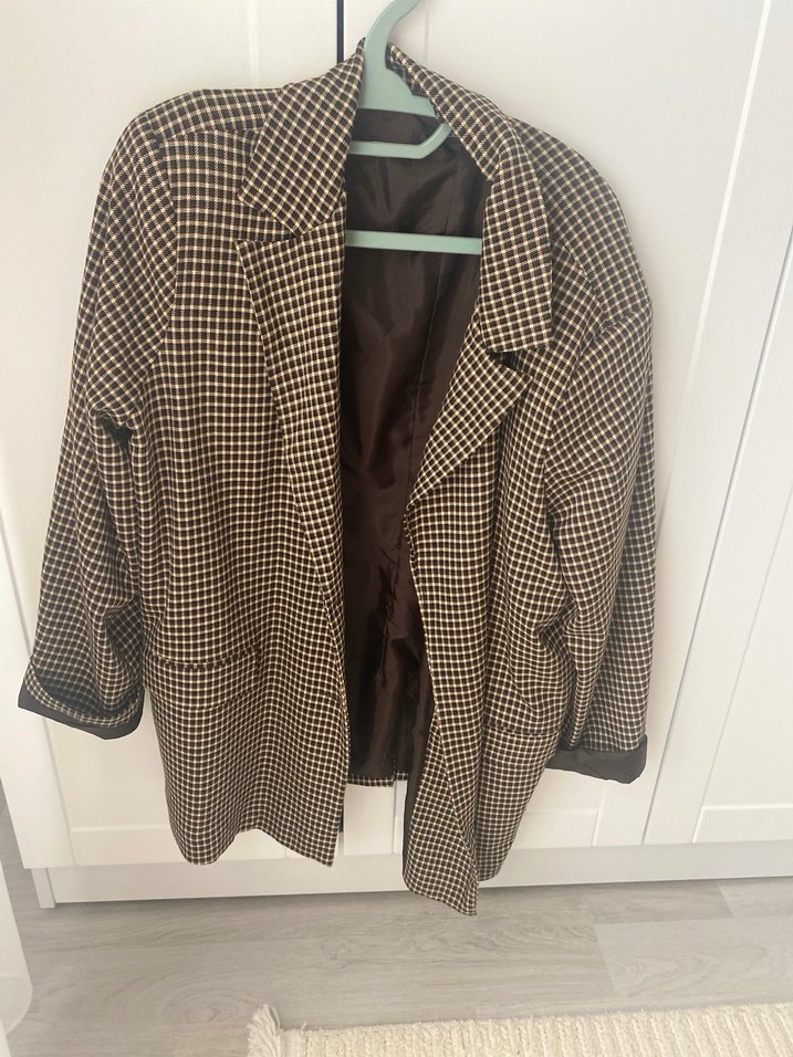 Kahverengi Ekoseli Kadın Blazer Ceket