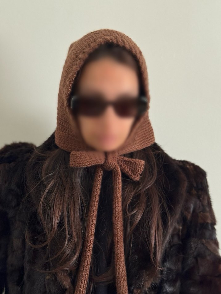 Kahverengi örgü bere. Çene altında bağlama ipleri bulunur. Bohem, retro ve gotik tarzı yansıtır.