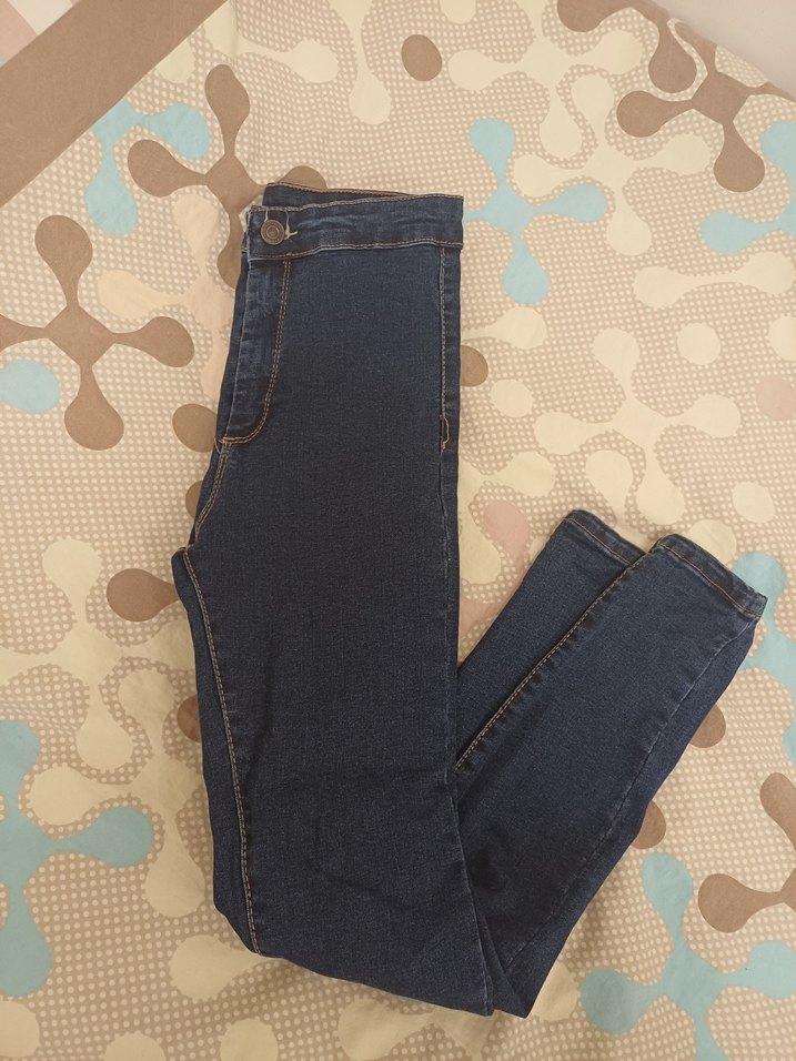 Elastik denim kumaştan yapılmış, kahverengi tonlarında, normal midi boyda, dar kesim kadın kot pantolon. Günlük sokak modasına uygun.