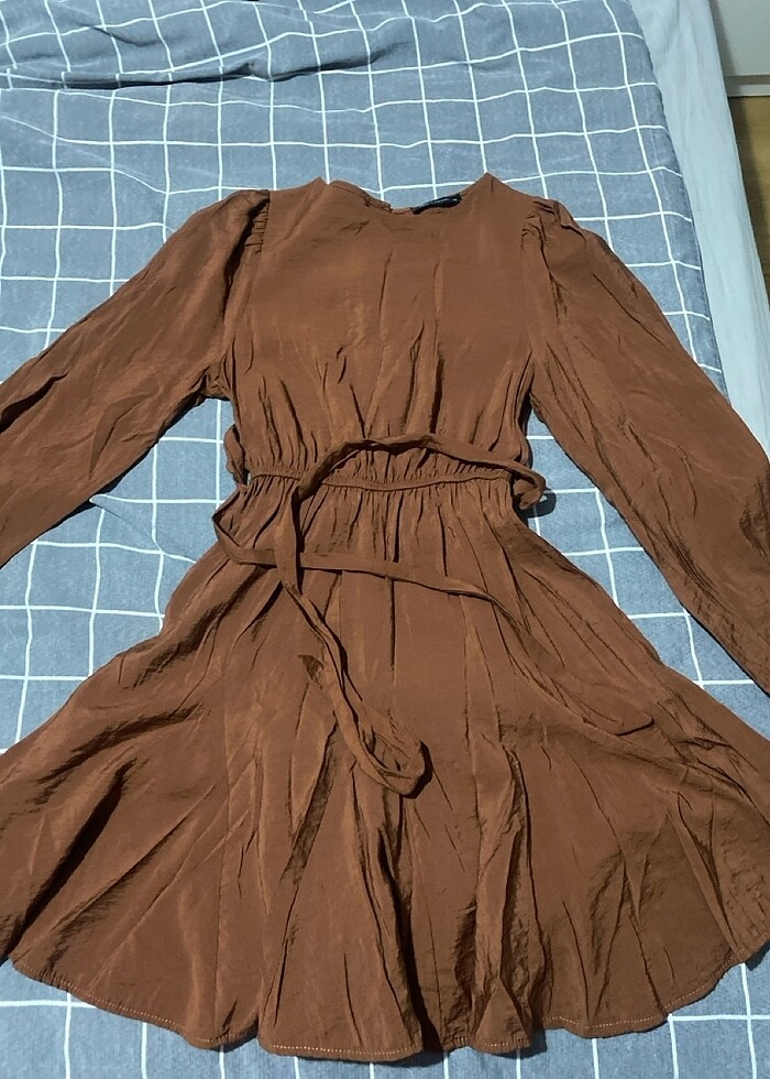 Belime dar olduğu için satıyorum . Baharlık elbise efil efil kumaş ve pileli salaş eteği balon kolları var Bu ğrpn tek başına satılmaz