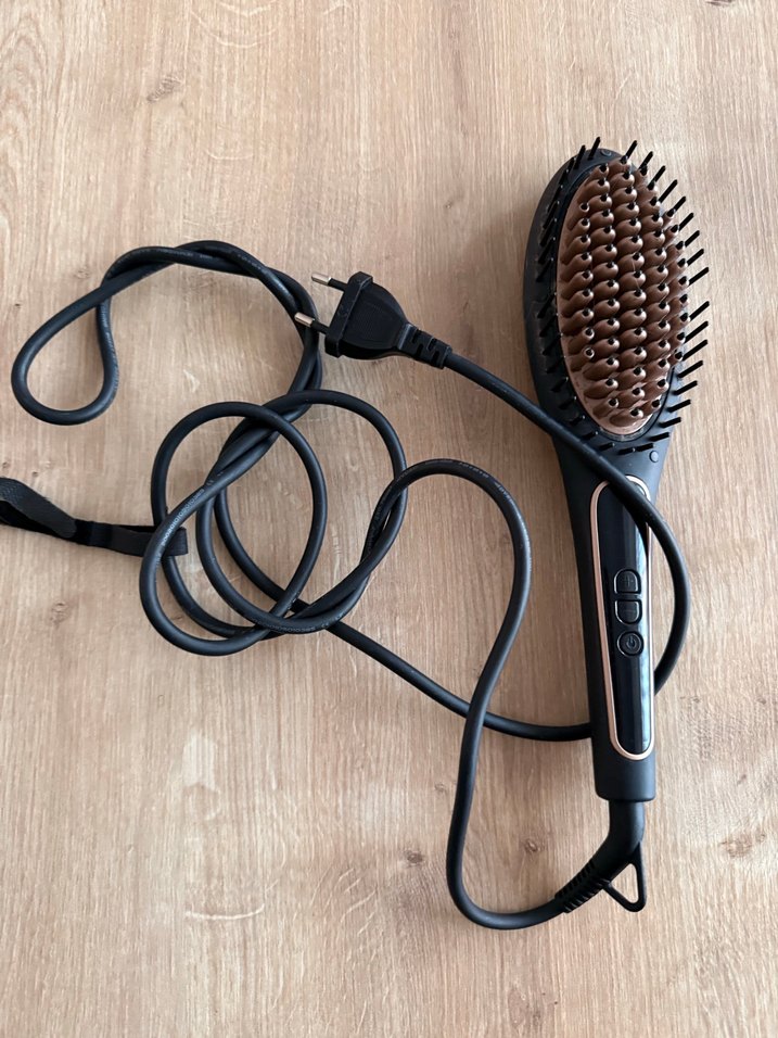 Kahverengi saç düzleştirici fırça, ayarlanabilir ısı ayarları ve uzun kablo ile kolay kullanım sağlar. Saçı hızlıca düzleştirmek için uygundur. ♀️