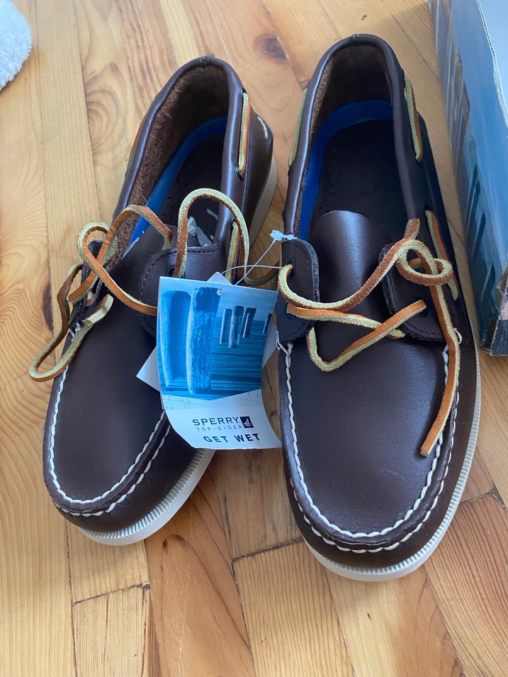 Kahverengi bağcıklı, tımberland tarzda erkek ayakkabısı. GETWET ve SPERRYA markalı etiketli.42 numara