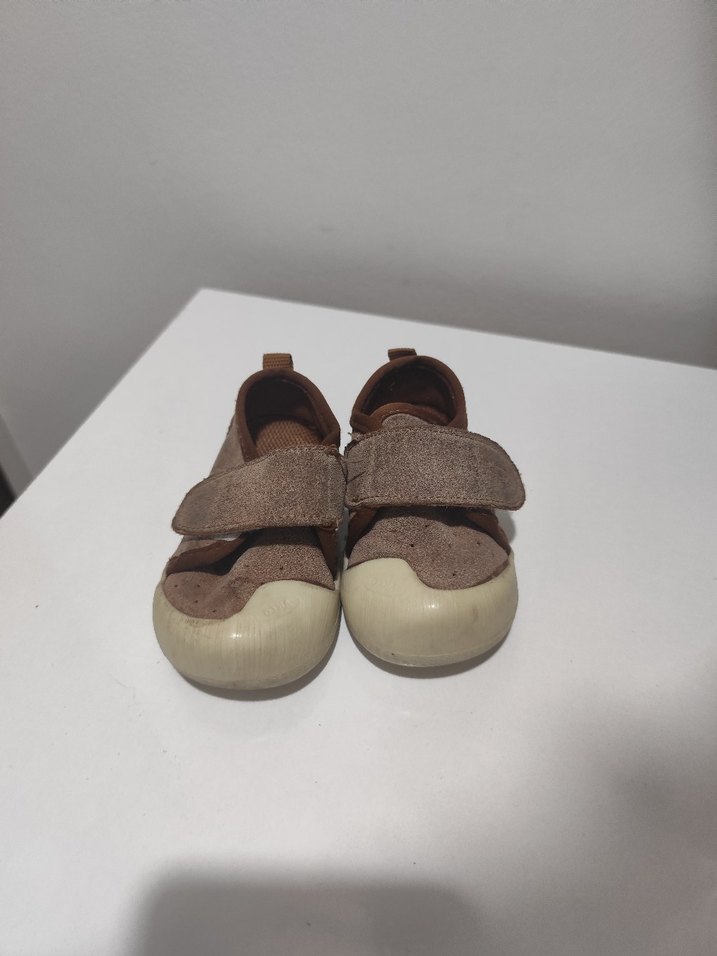 Kahverengi, cırt cırtlı ve kauçuk tabanlı erkek bebek ilk adım ayakkabısı. Düz, desensiz tasarımıyla rahat ve kullanışlıdır. temiz kullanılmıştir sorunu yoktur