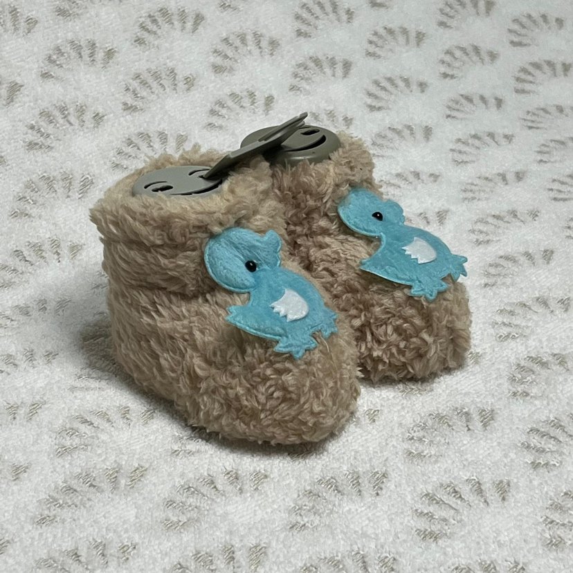 Erkek çocuklar için kahverengi, yumuşak kürklü detaylı, mavi ördek işlemeli sıcak terlikler. Rahat ve bohem tarzda.