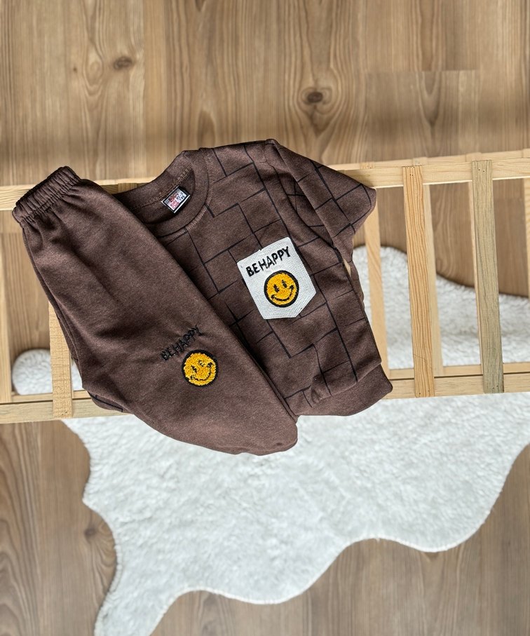 Kahverengi, uzun kollu, bisiklet yaka . Yumuşak ve sıcak dokulu triko kumaştan yapılmıştır. Üzerinde baskılı gülen yüz ve 'BEHAPPY' yazısı bulunur.