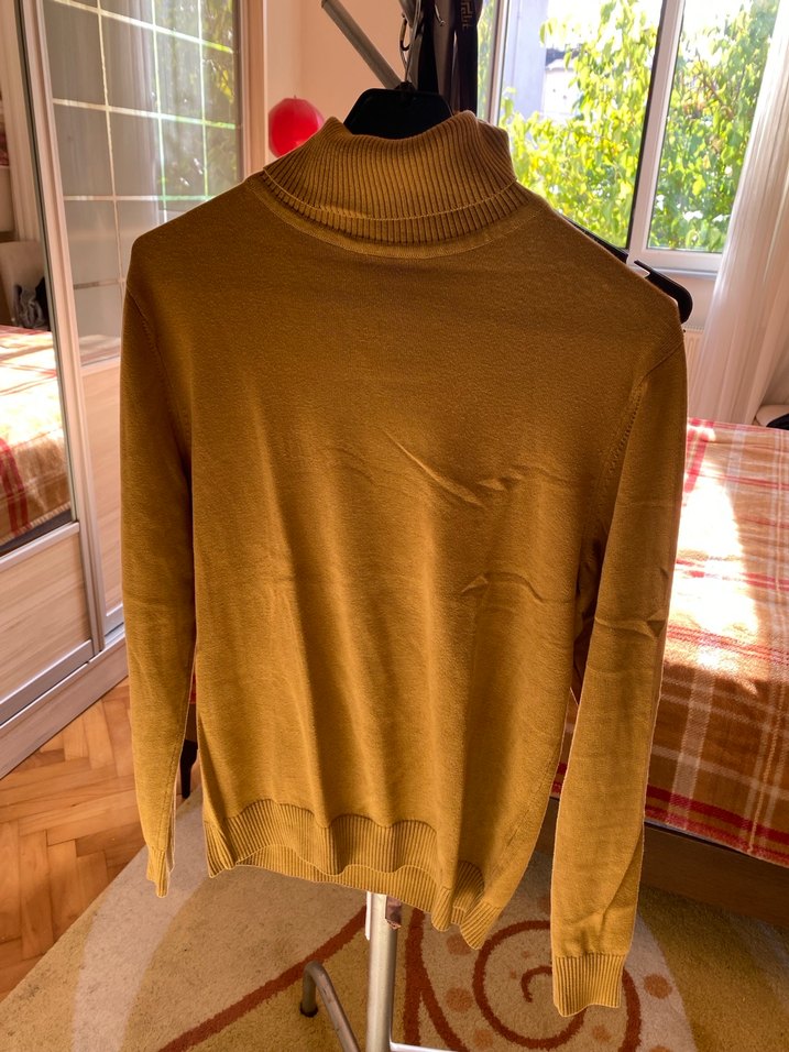 Kahverengi, boğazlı, uzun kollu ve vücuda oturan bu triko yün kazak, parlak görünüme sahip ve midi boydadır. Rahat ve şık sokak stiline uygundur.