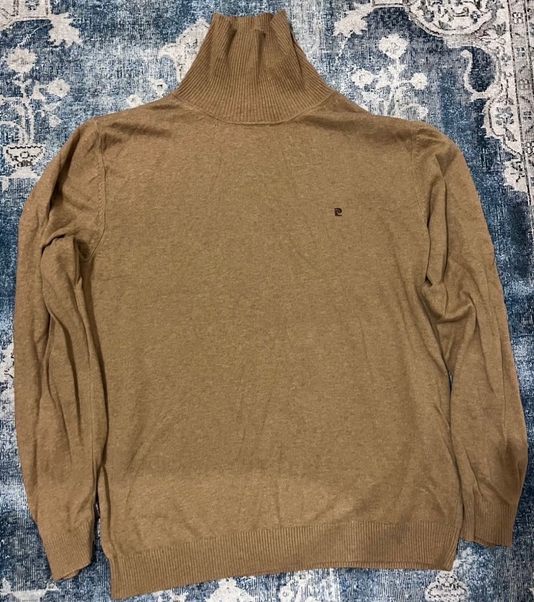 Kahverengi, uzun kollu, boğazlı ve rahat kesimli bu triko, yumuşak keten kumaştan üretilmiştir. Günlük rahat kullanıma uygundur.
