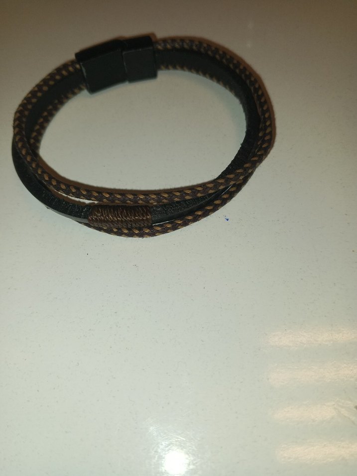 Koyu kahverengi tonlarda, sade bohem tarzda erkek bileklik, güvenli toka ile minimalist görünüme uygundur.