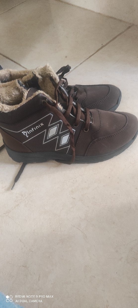 Koyu kahverengi erkek botu, velcro kapama ve yumuşak iç astar ile rahatlık sağlar. Desensiz, normcore tarzda.