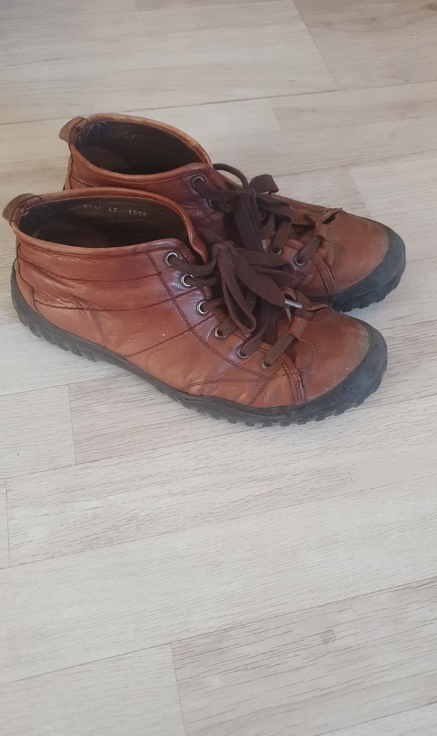 Koyu kahverengi erkek casual bot, bağcıklı ve tokalı tasarıma sahip, sağlam tabanlı sokak stili için uygun, rahat ve dayanıklı. yırtık sökük yok ama yıpranmış duruyor,aldığınız bir ürünün yanında hediye gönderebilirim
