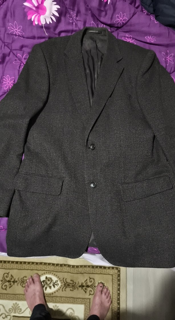 Bu erkek ceket, düğmeli ön, keskin yaka ve uzun kollara sahiptir. Kahverengi renkte, yüzde yüz yündür ve klasik ve şık tasarımla ofis kullanımına uygundur. ️