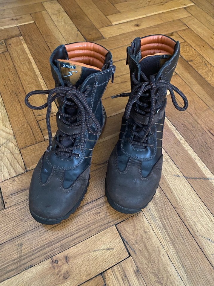 Koyu kahverengi kauçuk erkek çocuk biker botları, tokalı ve bağcıklı detaylara sahiptir. Dayanıklı, desensiz bir tasarıma sahiptir.