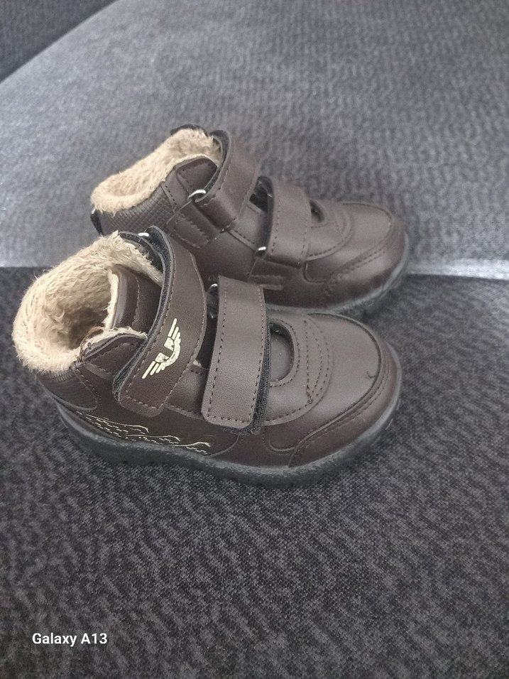 Kahverengi, kauçuk malzemeden yapılmış, Velcro bantlı, yumuşak astarlı erkek çocuk botu. Sokak stiline uygun, desensiz tasarım.