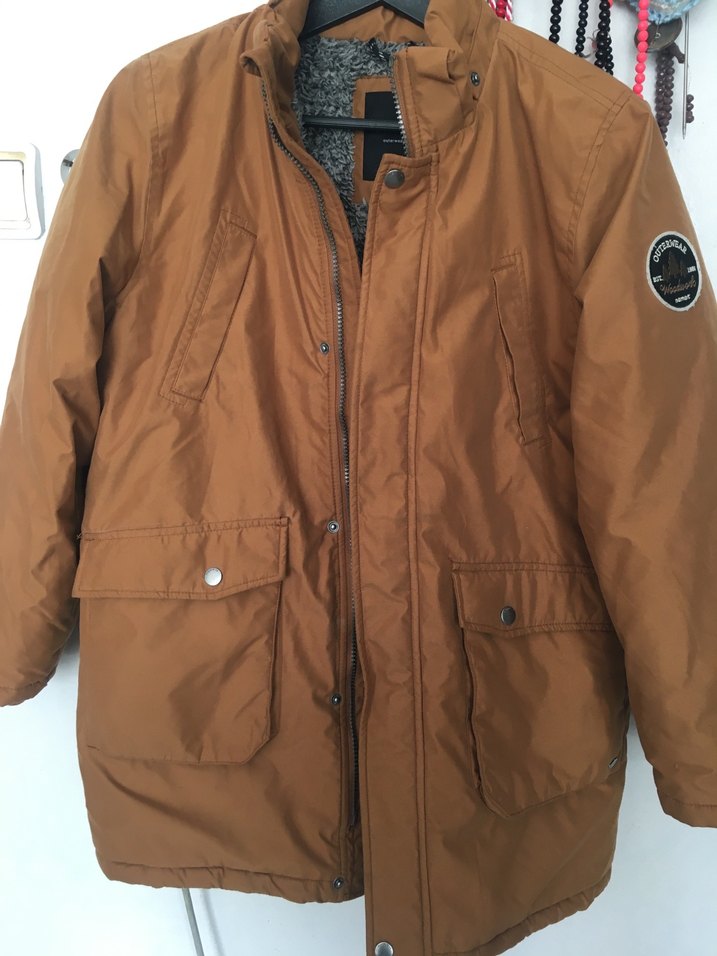 Name it marka Taba rengi erkek çocuk kabanı, parlak yüzeye ve bol kesime sahiptir. İç kısmı yumuşak ve sıcaktır, kapşonu yoktur bir iki defa giyildi sıfır sayılır oğlum çabuk büyüdüğü için giyemedi