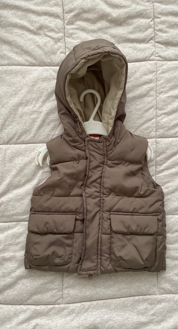 Tertemiz yepyeni sayılı giydi oğlum. Kapüşonlu, kahverengi erkek çocuk yeleği, kolsuz ve vücuda oturan kesimde. İç kısmı yumuşak kürk detaylı, sade tasarımlı.