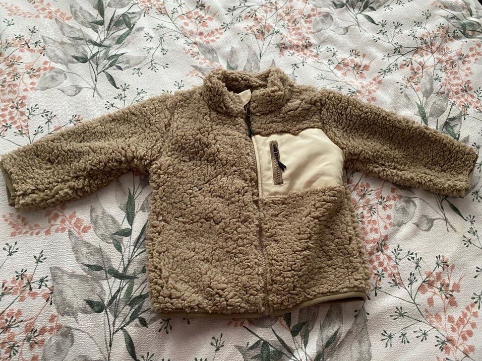 Fitted kesim, yumuşak ve sıcak kumaşlı kahverengi erkek çocuk ceketi, kürklü detaylı ve çentikli yaka. Göğüs kısmında fermuarlı cep bulunur. Kalıp küçük 3/4 yaşa da olur 0 etiketli erkek kız çocuğa da uyumlu