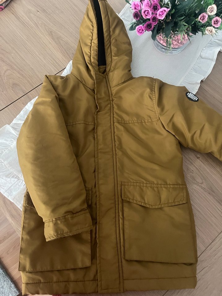 Kahverengi, kürklü detaylı, fitted kesim erkek çocuk montudur. Sokak tarzına uygun, düz ve desensizdir kullanmaya yönelik maalesef ÇITÇIT kısımlarında tahribat oldu onu da bildirmek isterim.
