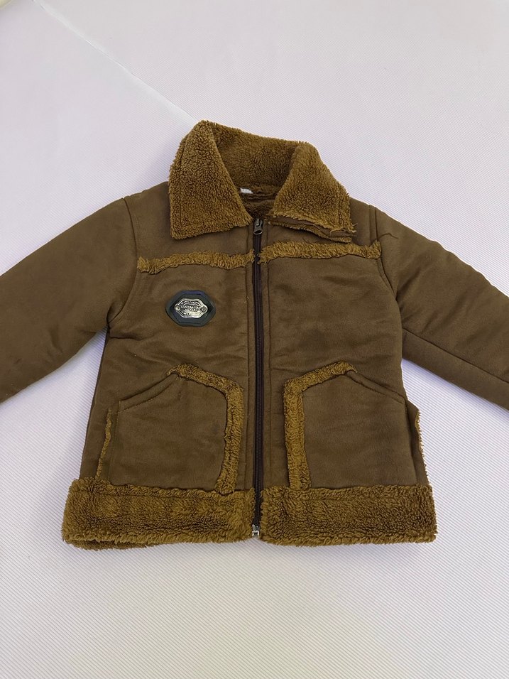 Kahverengi, kürklü detaylara sahip erkek çocuk montu. Düz kesim ve nakışlı tasarımıyla sokak stiline uygun, sıcak tutar. 2,3 yaşa uygundur